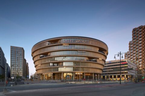 Forskaren, Stockholm, Sweden (Developer: Vectura; Architect: 3XN); A new 24,000 sqm development located in the Hagastaden health and life sciences district. The circular building is intended as a hub containing flexible work environments including offices, co-working and laboratories, two public restaurants and exhibition space. It is designed as a vertical life sciences village that aims to encourage connection and collaboration between industry, research, and academia, situated in an open environment. The jury praised how the round building interacts with the public realm, sustaining community engagement by inviting people in to explore, with many areas open to the public including the atrium where science is openly on display, plus ground floor restaurants and an exhibition space. (Category: Other/Labs).